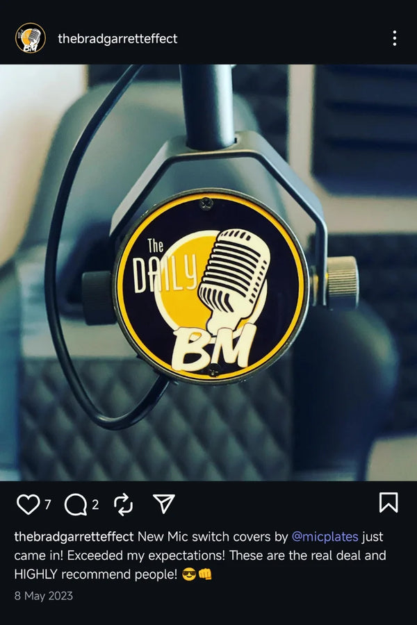 At Mic Plates, we are committed to making your mics just as powerful as your voice. We design fully customizable Shure SM7dB & sm7b mic covers by hand in Texas from top-of-the-line coated aluminum for the ultimate in durability. Whether it's your logo, your style, or your message, our shure sm7b covers make your microphone a strong statement of your brand. With exacting process, bright durable colors, and rapid turnaround, we ensure the shure microphone back cover behind your voice is uniquely yours.